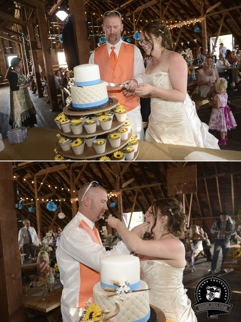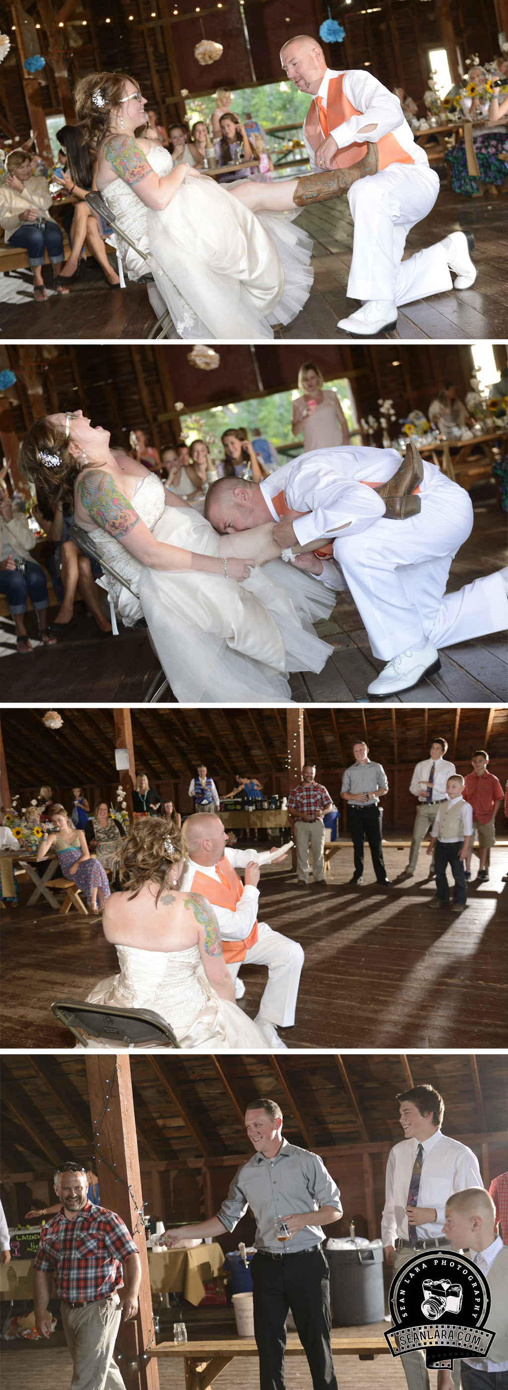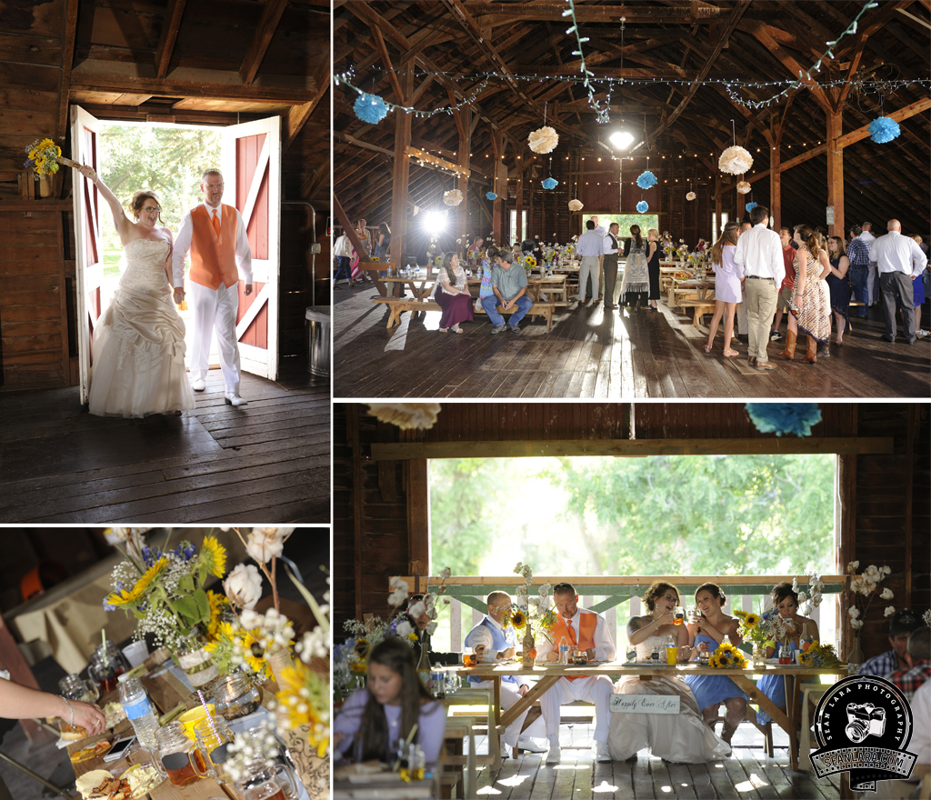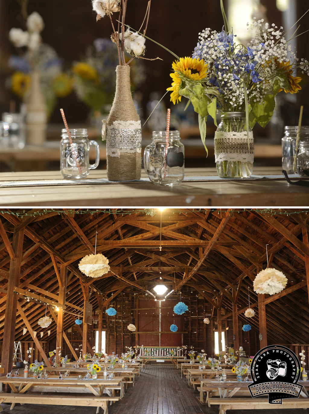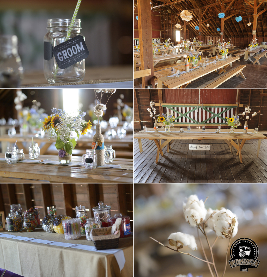 For this particular wedding at the ranch, the reception was held in one of the smaller barns above the old stables, but it was such a great setting. Madison put together most of the decorations and table settings herself which made it even more special – and I think they came out absolutely spectacular. You can definitely tell she put a lot of hard work planning and organizing everything for her wedding. The table pieces had flowers, stems of cotton, mason jar glassware and other rustic elements. Bill from Bill’s DJ Service provided the music and entertainment, and as always did a great job. If you’re looking for a DJ in the area, I’d recommend him.